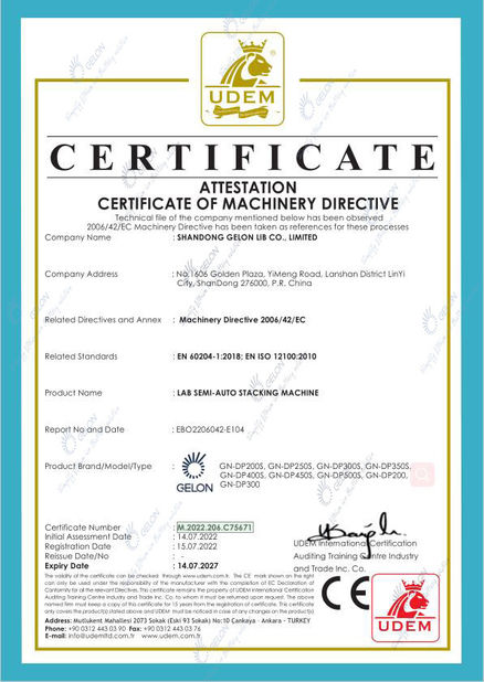 استاندارد:CE عدد:M.2022.206.C75671 تاریخ صدور:2022-07-14 تاریخ انقضا:2027-07-15 محدوده / محدوده:LAB SEMI-AUTO STACKING MACHINE صادر شده توسط:UDEM |
